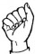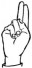 На ћирилици написано РУМЕНА ЋАТИЋ састоји се из 11 слова [?]. Исписано ћириличном једноручном азбуком за глувонеме: